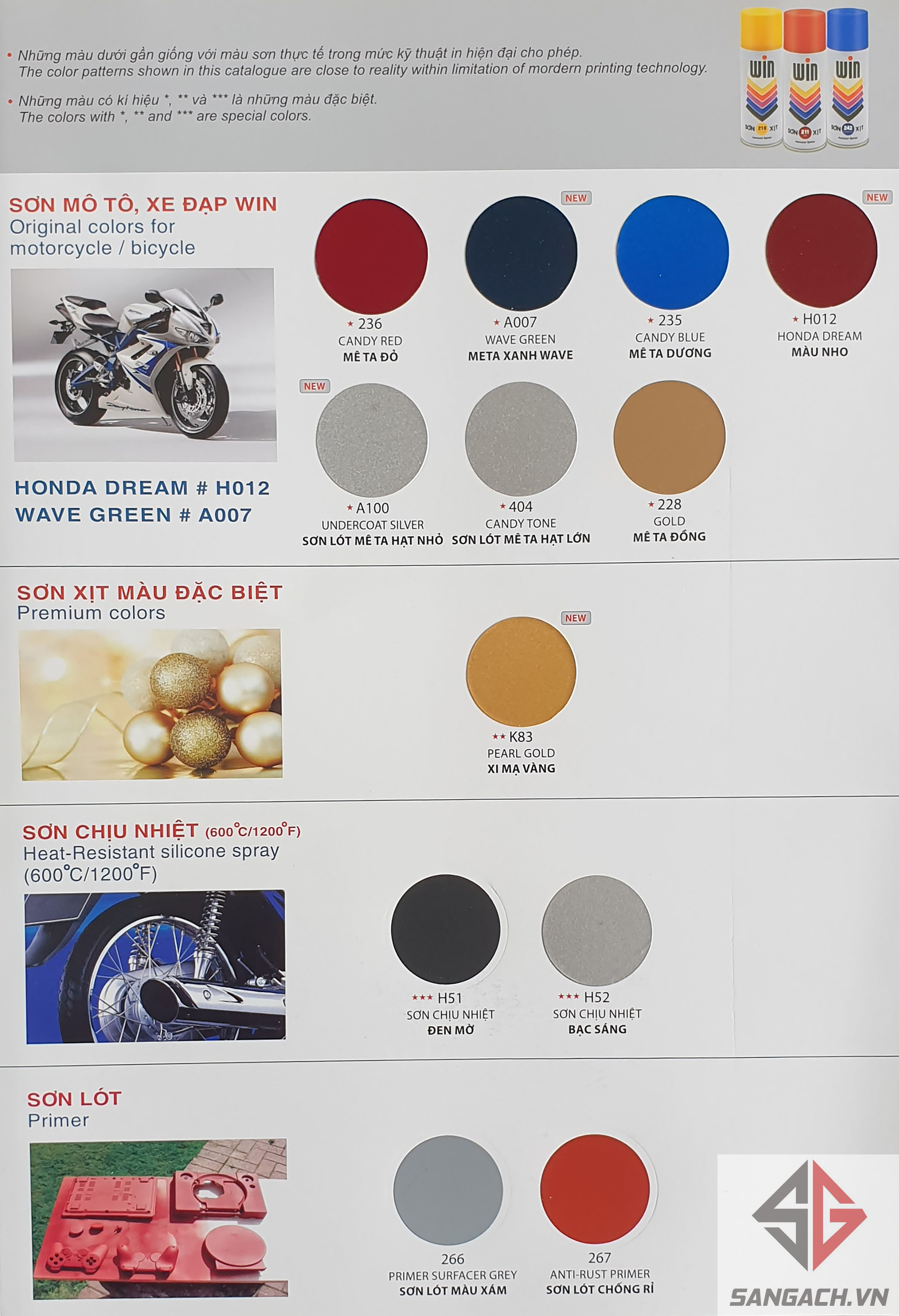 Sơn xịt WIN xe mô tô, xe máy, xe đạp :